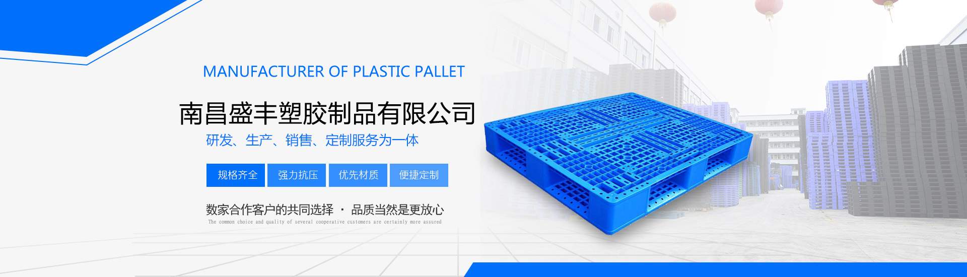 南昌盛豐塑膠制品有限公司擁有先進大型注塑、吹塑滾塑成型設備,技術力量雄厚,是專業(yè)生產工業(yè)塑料產品的企業(yè)。主營產品:塑料托盤、凹槽印刷托盤、煙標煙盒印刷托盤、貨架叉車專用托盤、出口托盤、抗摔吹塑托盤、塑料棧板、塑料吹塑托盤、塑料地臺板、塑料倉庫防潮板、塑料周轉箱、EU物流箱、歐標箱、折疊箱、工具箱、食品箱、面包箱、面包架、周轉筐、籮、化工桶、PE水塔、塑料PE水箱、垃圾桶、塑料加藥箱、塑料一噸方桶、塑料IBC噸桶、打不爛餐具消毒箱、等制品。我們秉承誠信服務的意念,在產品的售后服務上,我們有著專業(yè)的業(yè)務人員定時跟進,確保客戶滿意度!